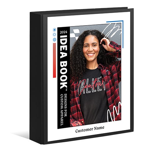 The Idea Book is a showcase of t-shirt artwork. It comes in a personalized binder and has no Transfer Express branding anywhere! The book is filled with thousands of customizable layouts to help your customer find exactly what they are looking for. The Idea Book pairs with the online designer, Easy View, a free design tool you can login and customize any of the Idea Book layouts to make them your own. To help your customers find the art they need the book is divided into five broad color-coded categories.