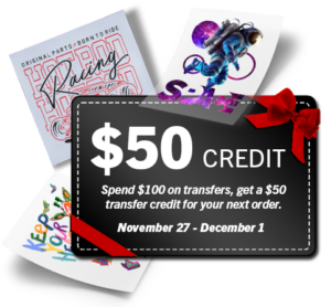Spend $100 or more on any Transfer Express® custom transfer order