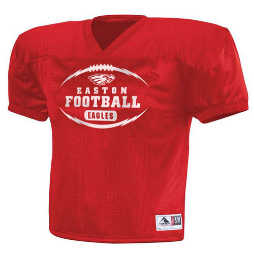 We’ve shown this layout on a Augusta Sportswer Dash Practice Jersey from Transfer Express Apparel. When decorating polyester fabric, choose a low temperature heat transfers like Elasti Prints® plastsiol transfers. These ink transfers apply at a low temperature making them perfect for polyester performance wear like uniforms and warm-ups.