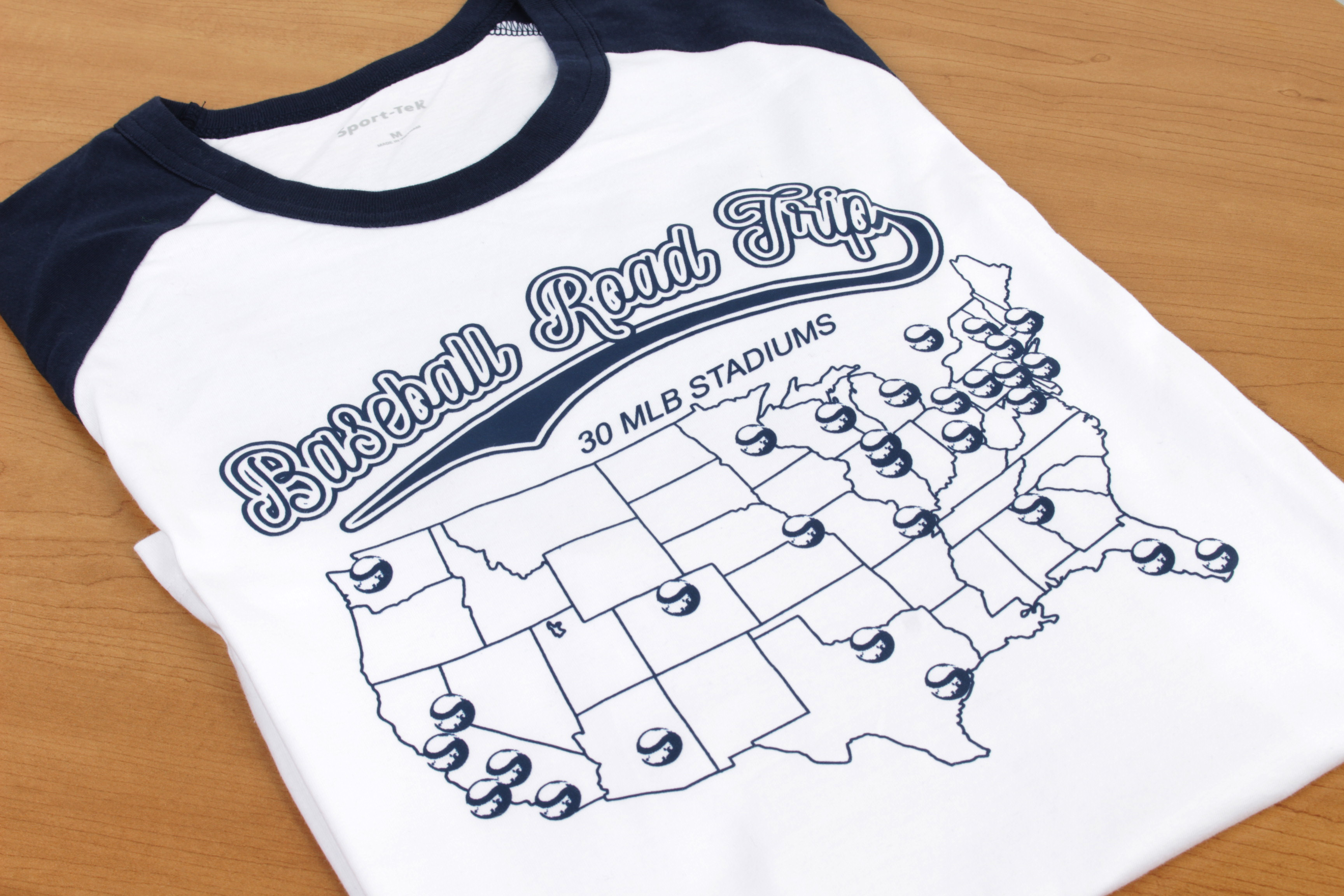 We have enjoyed each trip and love meeting baseball fans. We have also realized we are far from the only ones who have taken this baseball challenge. To commemorate this trek, I used Easy View, our online designer, to create a souvenir t-shirt.