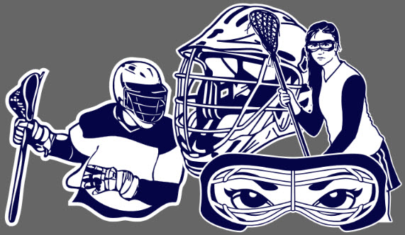 When using clip art of lacrosse players in your custom designs, it is important to note that female and male lacrosse players wear different masks. The male lacrosse players wear a helmet that covers their whole head, where the female lacrosse players wear a mask that mainly covers their eyes. The clip art below are just a few examples of clip art that show the player masks.