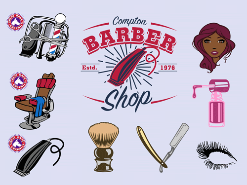 New Barber Shop and Salon Layout and Clip Art for Custom T-shirt Design
