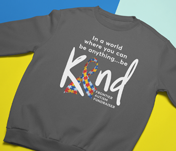 Whether you’re decorating for a run/walk fundraiser, a raffle or another type of Autism Awareness fundraiser, you’ll be able to create a design everyone will love. The “Autism – Be Kind” Layout QFD-69 promotes kindness and gives motivation to attendees of the fundraising event. This design can be customized with the event name or sponsor name and heat printed onto popular apparel items like this Gildan® Crewneck Sweatshirt (12000). With Stretch Litho Matte heat transfers, you can heat press the transfers to any color (light or dark) that is cotton, polyester or cotton/poly blends.