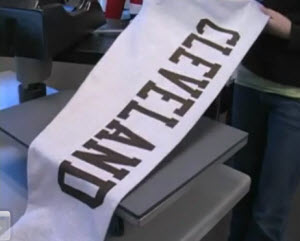 Here is a video that shows a custom screen printed large leg transfer being applied to sweatpants.