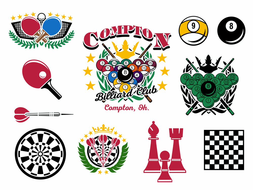 Artwork Ideas and Tips New Rec Sports Layout & Clip Art for Custom T-shirt Design Dealer ServicesJuly 12, 2016November 14, 2017 billiards, chess, Clip Art, club, darts, layout, league, leisure, new, ping pong, pool, rec sports, recreation
